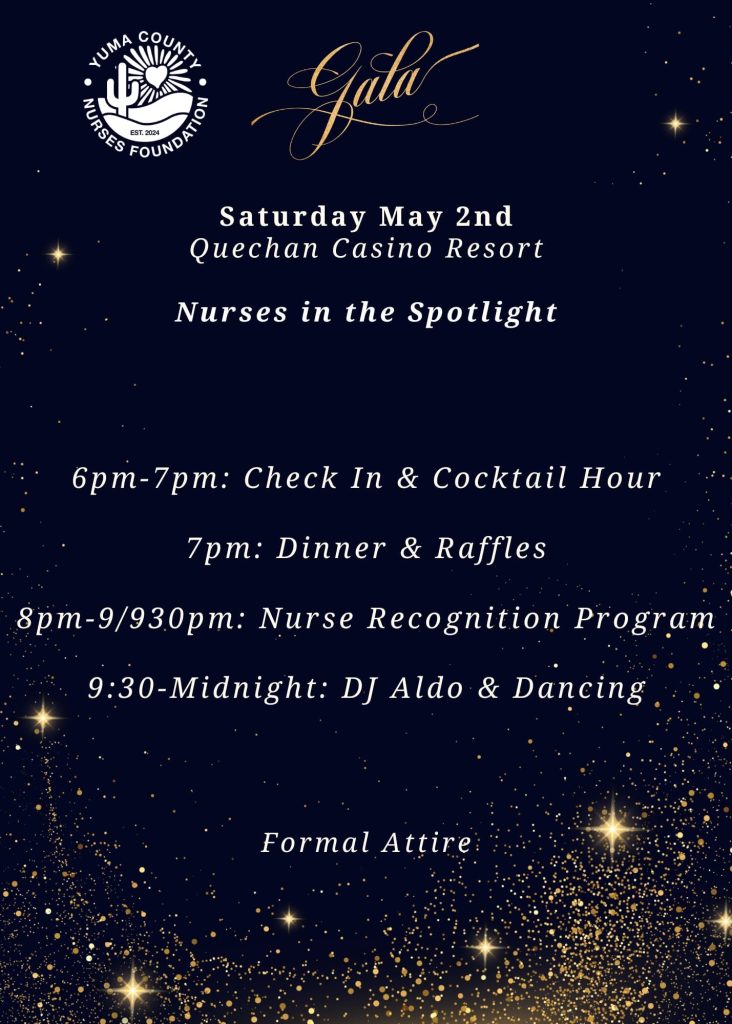 The Yuma County Nurses Foundation created in 2024 is a 501(c)(3) non-profit organization inspired by the tradition of the Yuma County Nurses Celebration that began in 2009. The Yuma County Nurses Foundation is dedicated to continuing the tradition of honoring all Registered Nurses and Advanced Practice Registered Nurses of Yuma County.